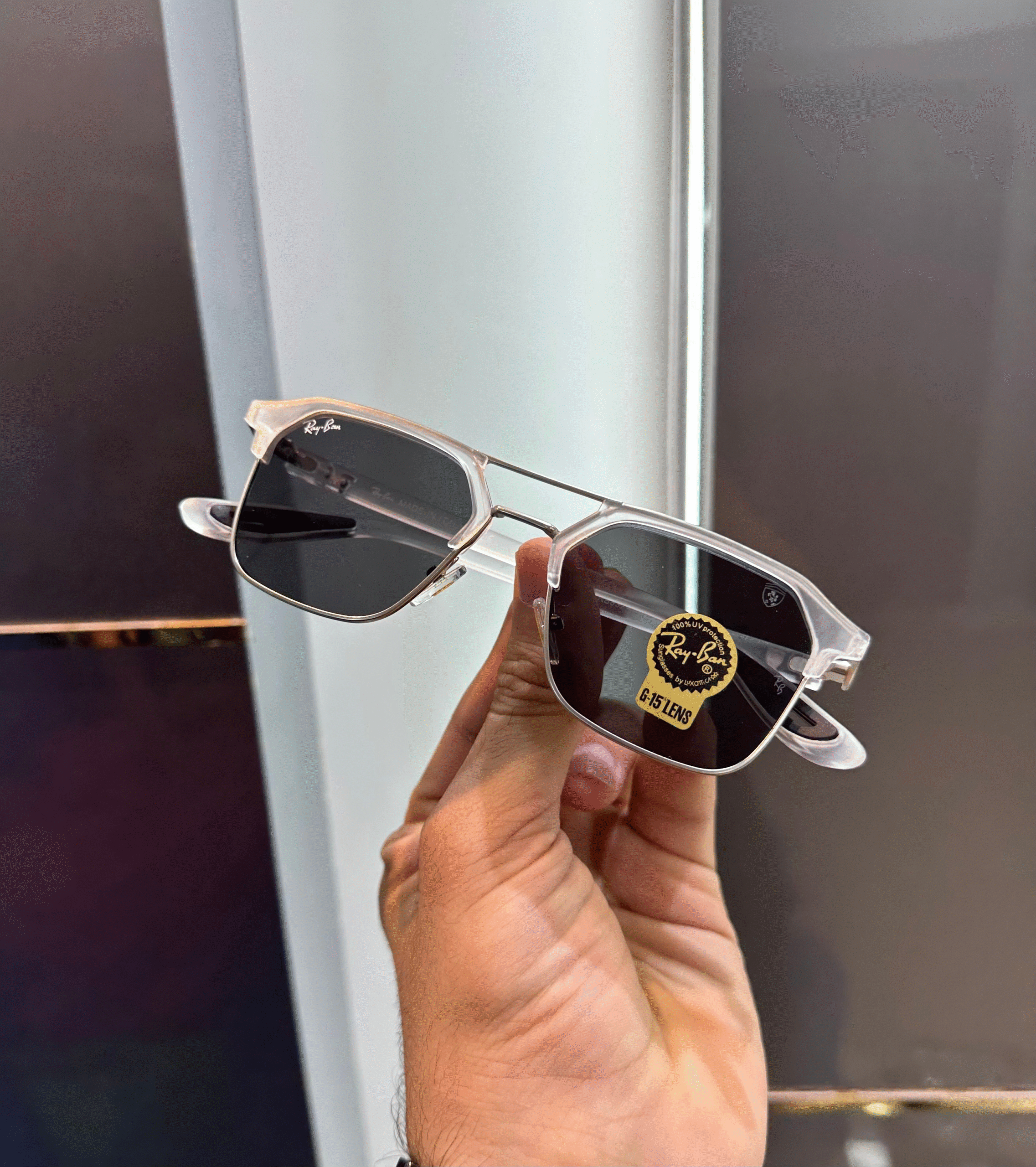 Ray-Ban White With Black Premium Shade 8249